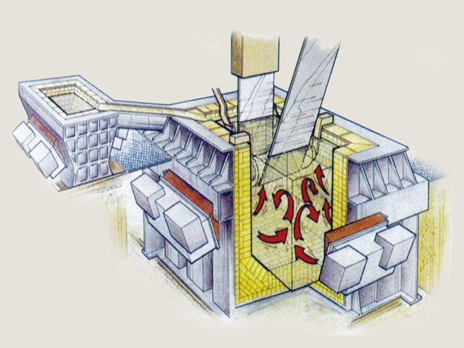 溝型誘導炉の種類のなかで、小容量から大容量まで幅広く対応できるタイプです。
