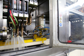 日々進化する市場のニーズに対応するため、サイクルタイム6秒の設備を納入し、更に向上させるべく、改善を行っております。複雑化する形状に合わせ、分割型のインダクターを使用し適切な焼入れパターンを達成させております。